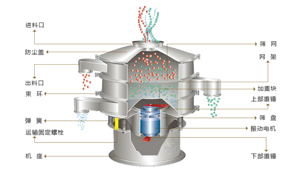 三次元圆形樱桃污软件安装采用YZUL立式振动电机作为激振源,通过振动电机上下两端的偏心重锤将旋转运动转变为水平、垂直、倾斜的三次元运动,并传递到樱桃污软件安装的筛面上;物料通过入料口进入设备内,根据不同物料筛分要求,物料经过1-5层采用不同目数的金属编织筛网的筛分层,在这个过程中,位于各层的筛网下的清网装置(弹跳球)通过频率振动不断撞击不锈钢筛网,使筛网上层物料能够顺畅的透网筛分,并有效解决了物料堵网问题出现,不同目数的物料通过各层对应目数的筛网后在各层的出料口排出,终实现筛选除杂或过滤分级的目的。